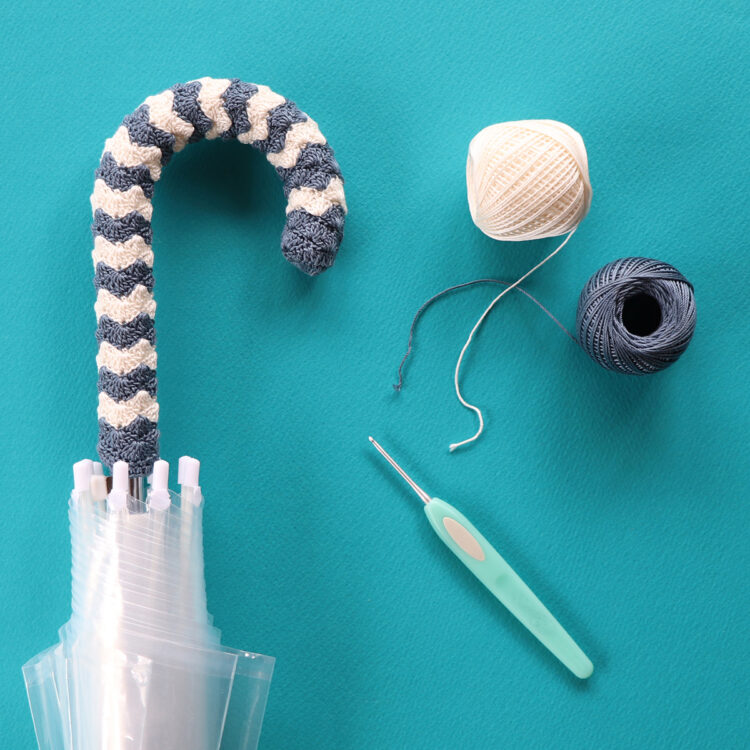 かぎ針編みで傘のグリップ(持ち手)のカバーを編みます。