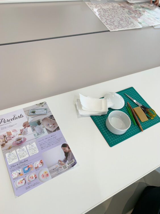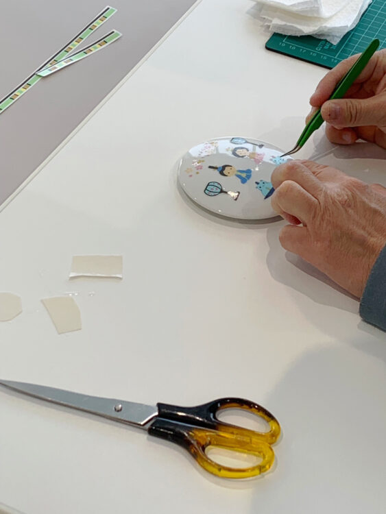 今から真っ白なお皿に、奥にちらっと見える可愛らしい模様のシールを転写していきます✨
