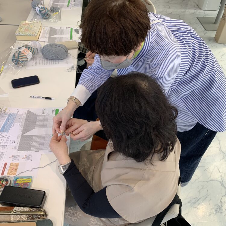 編み図を見ながら、わからないところは先生に聞きながら、、、