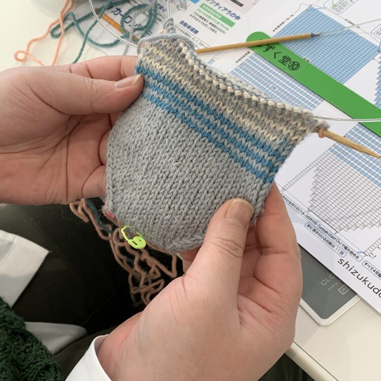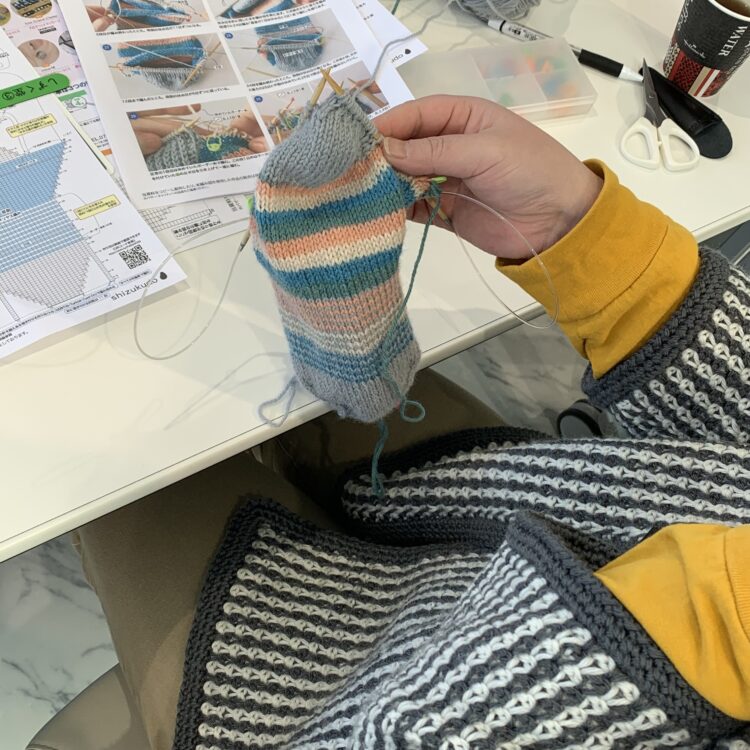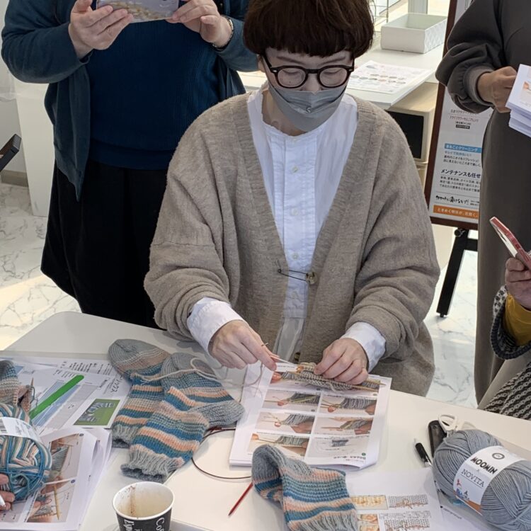 最後は、靴下の縁となる部分の編み方をレクチャーしてもらいます。