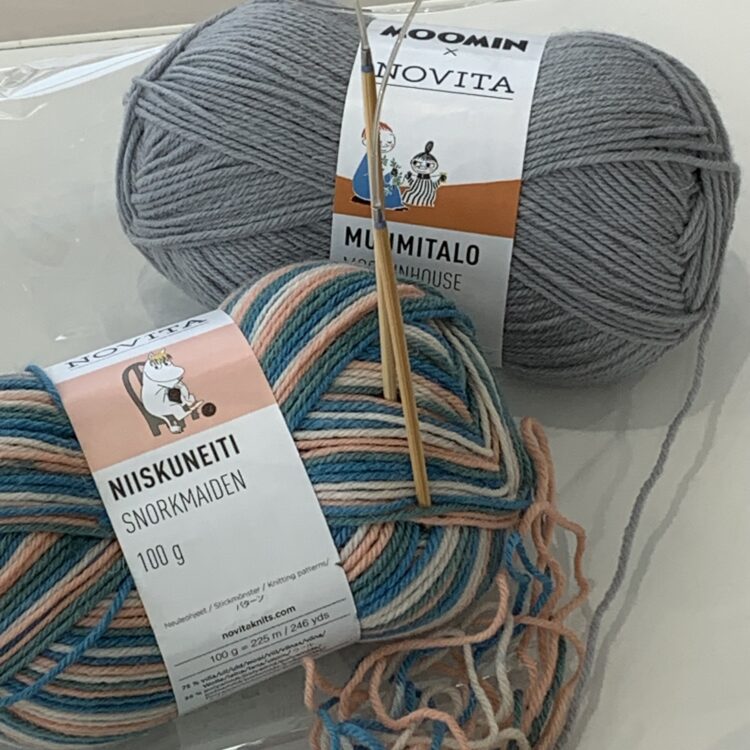 ムーミンの世界をイメージした色合いの毛糸を使って