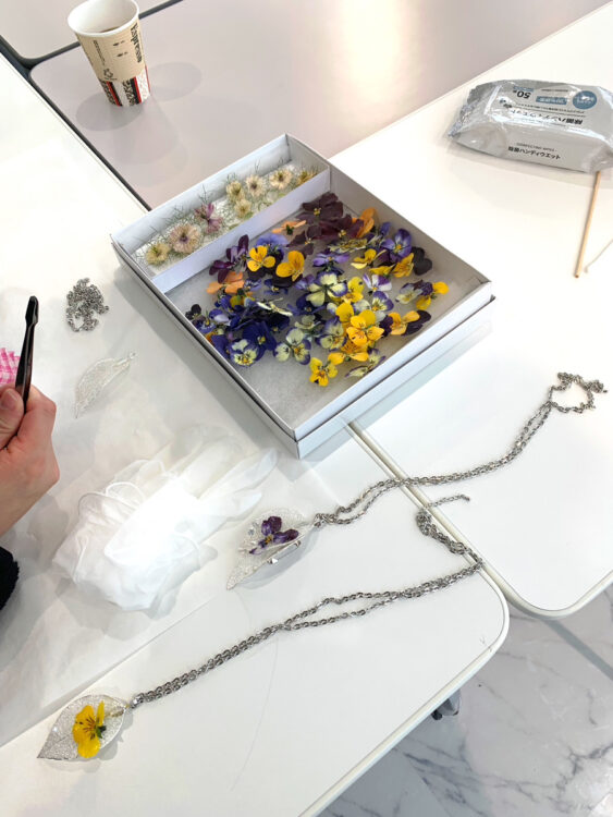 花まつフラワーアカデミー様による【「シルバーリーフとレカンフラワー」のネックレス作り】レッスンの様子をご紹介します✨