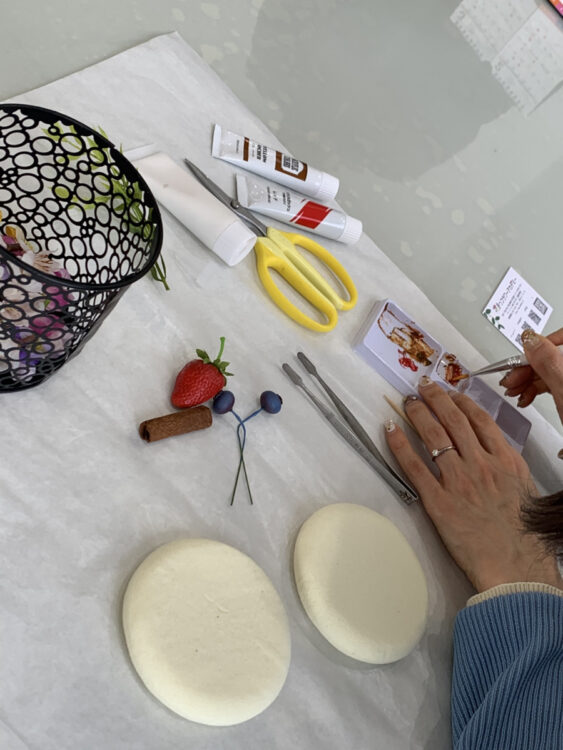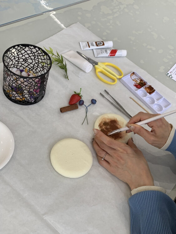 本物そっくりなフルーツやお花のパーツを使ってパンケーキを手作りするという、バレンタインにぴったりのレッスンでした😊