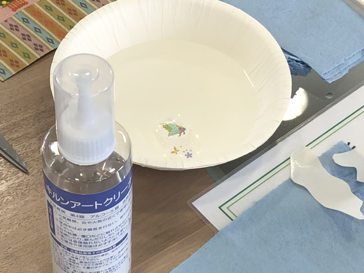作業を始める前に、アルコールを使って器の汚れを落としていきます。