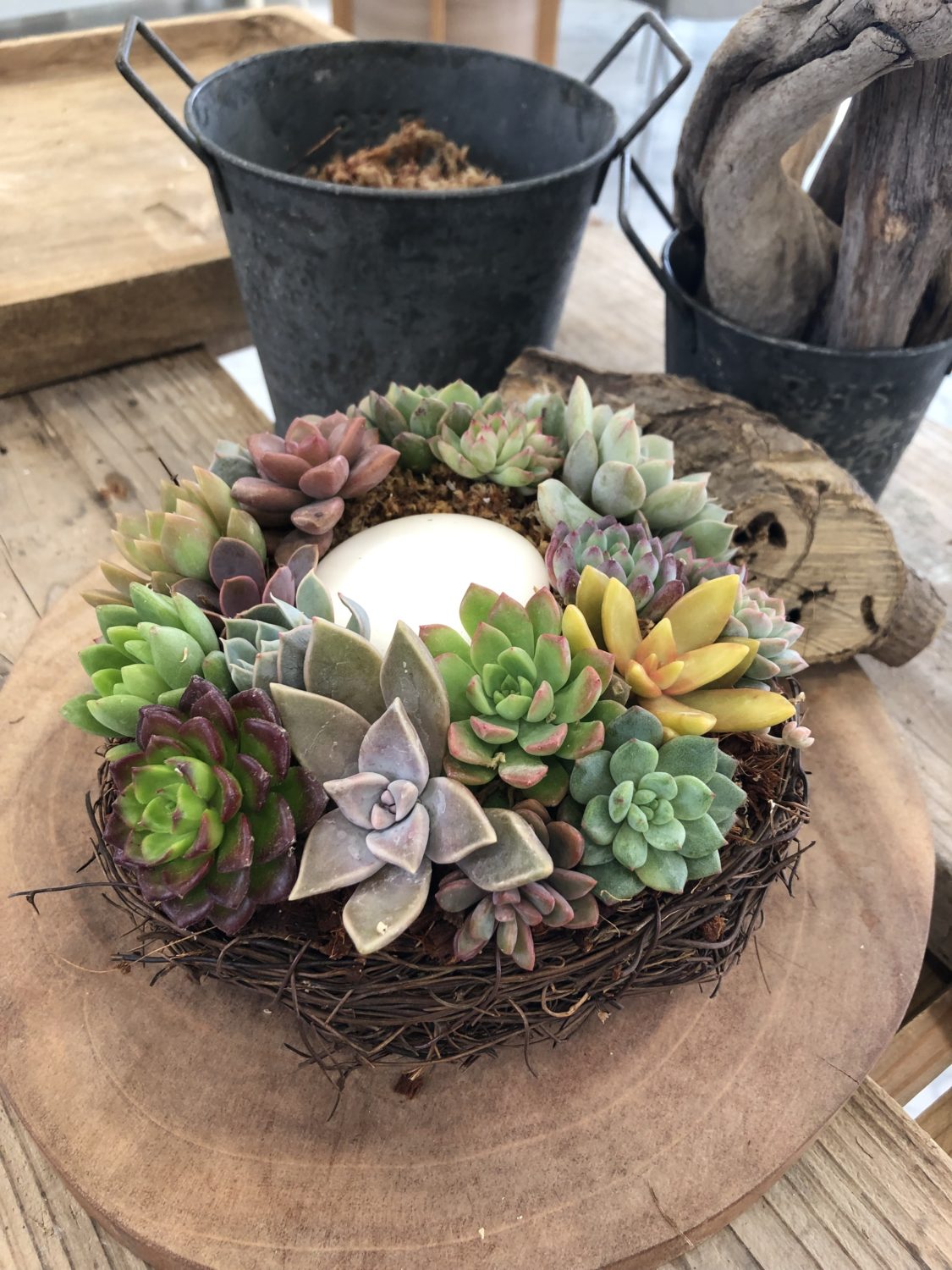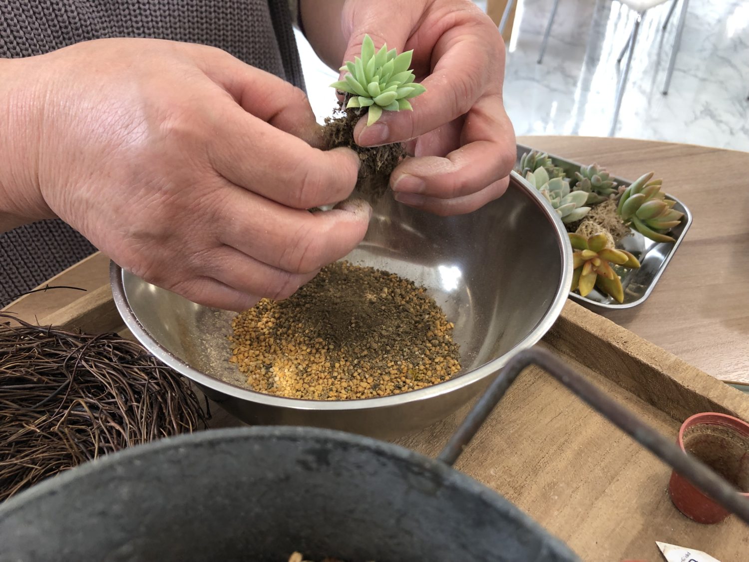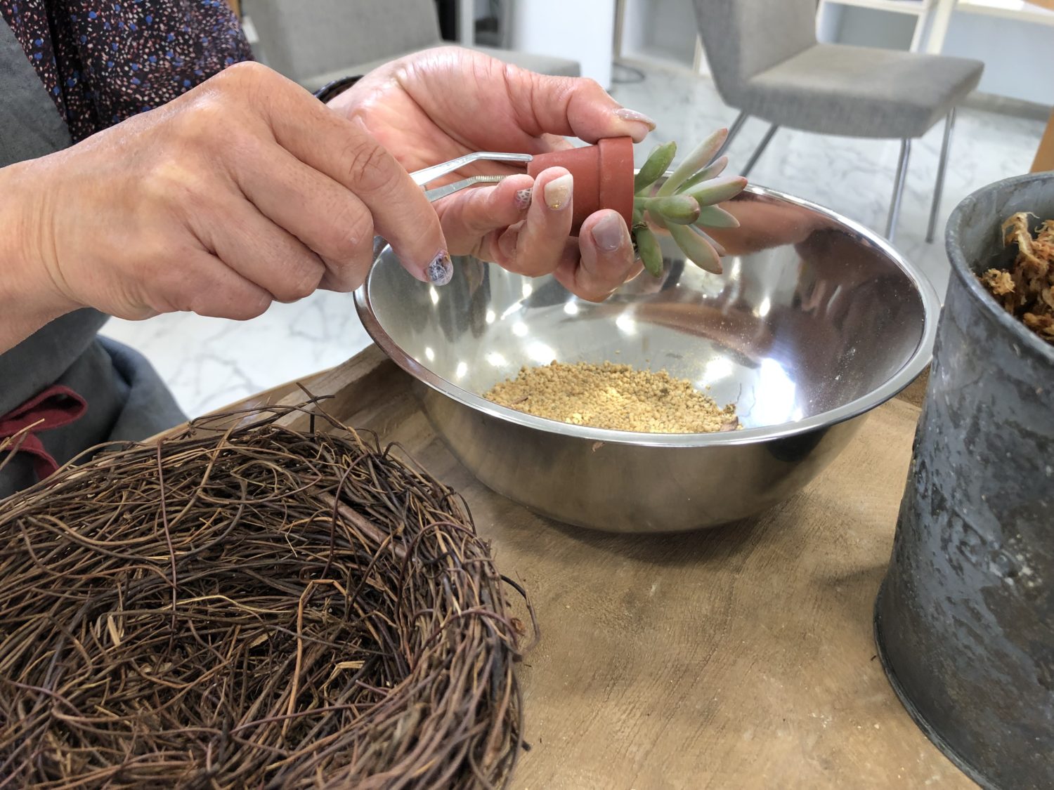 【キャンドルリース】は小さな多肉植物を寄せ植えして作っていきます!