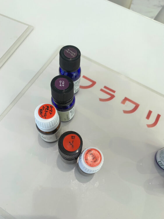各オイルにラベルが貼ってあるので、自分の気に入った香りが何の香りなのかすぐに分かります😊