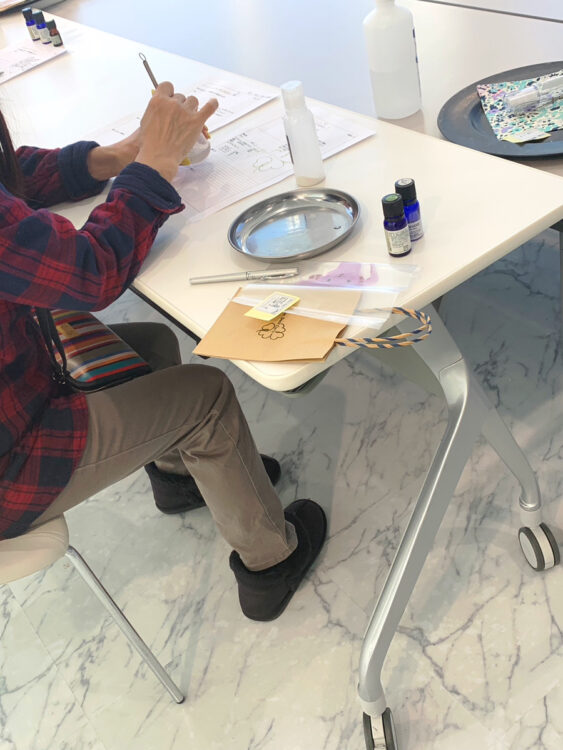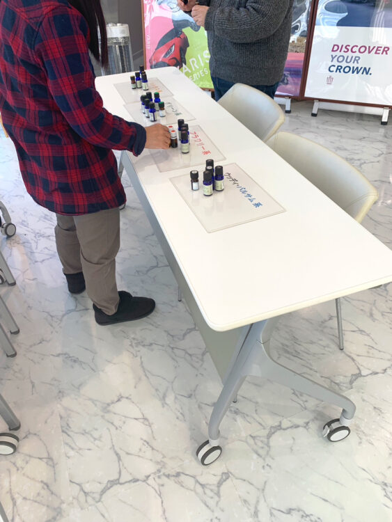 気に入ったアロマオイルを選んだら、ブレンドする比率などを先生と相談しながら決めていきます。