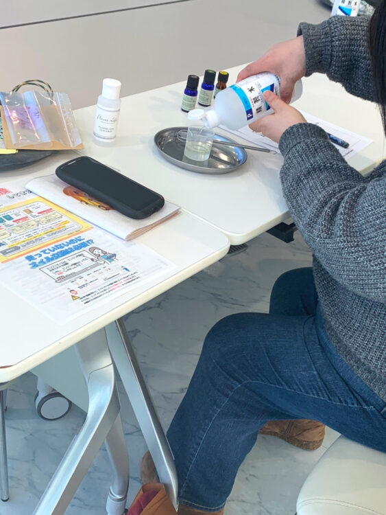 今回は、そんな季節にピッタリの心と肌を癒してくれる導入化粧水をアロマを使って自分で作ることができるレッスンでした✨