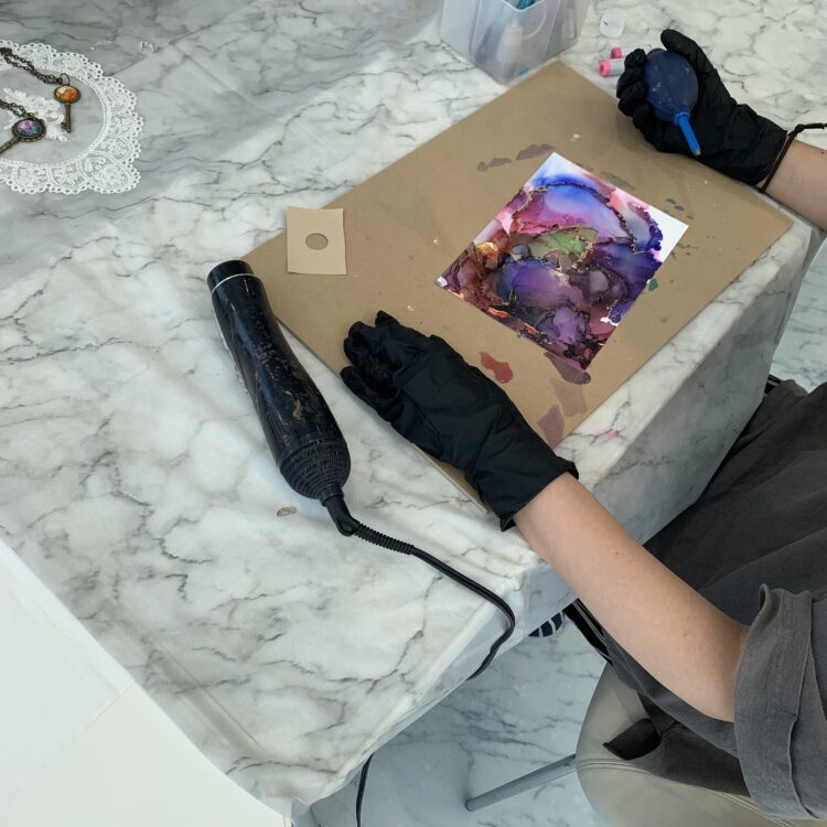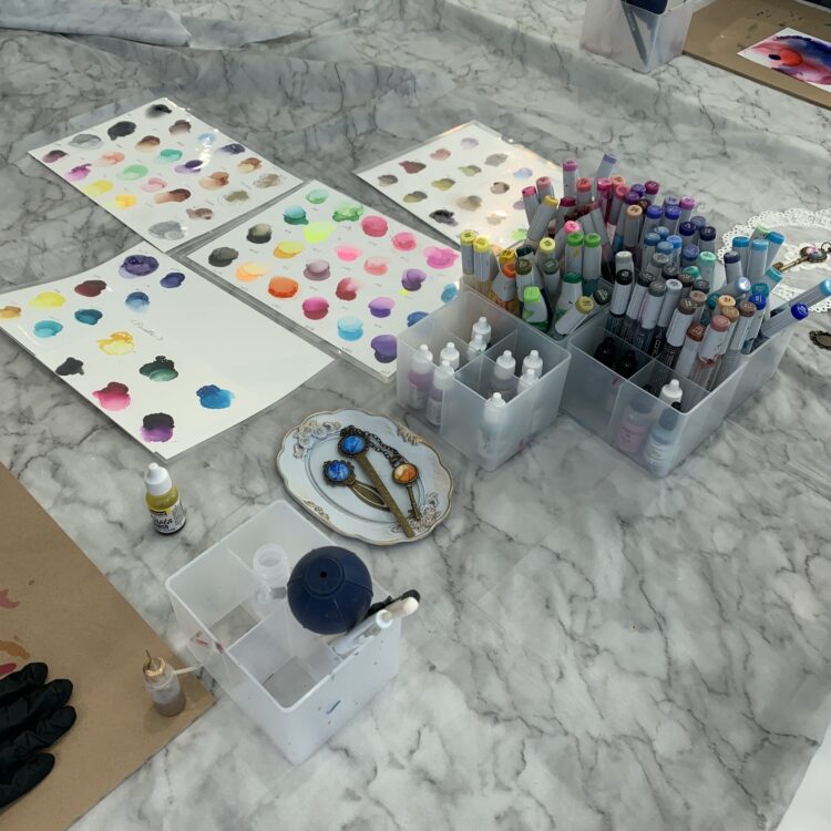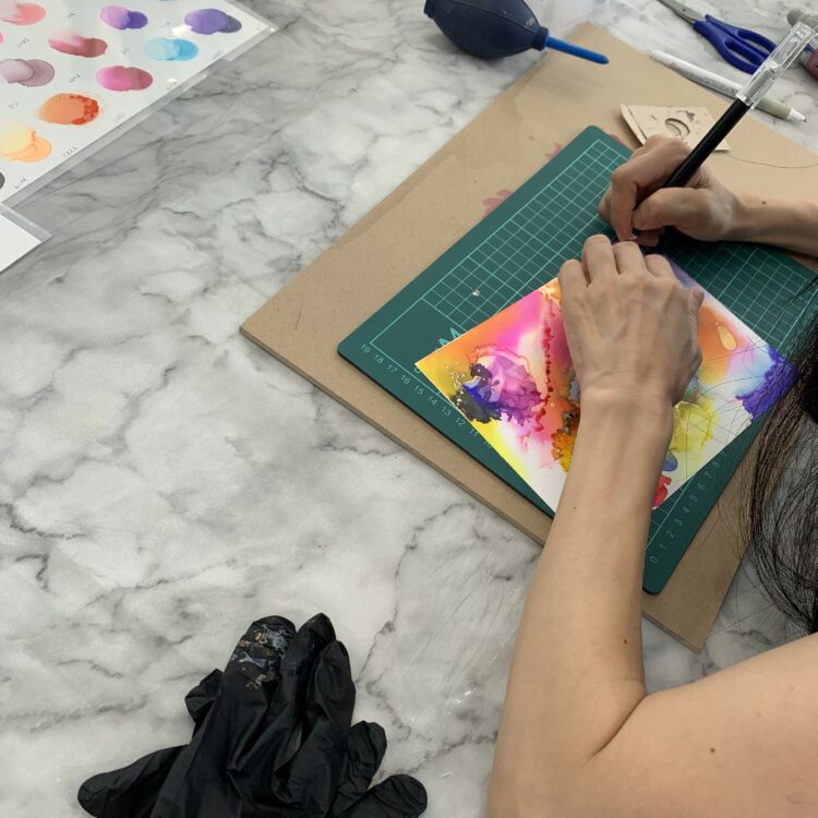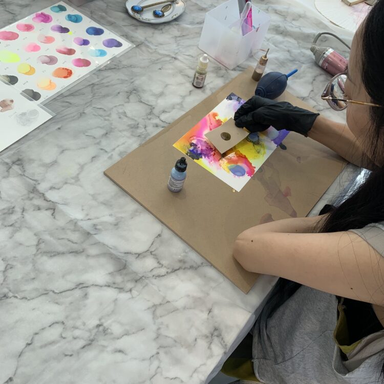 アルコールインクアート体験のレッスンの様子をご紹介します~~♪