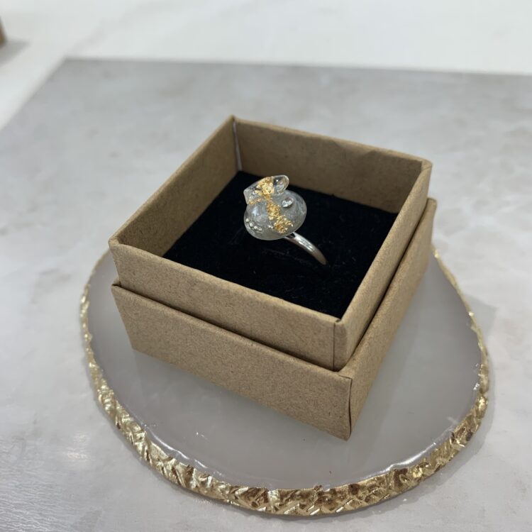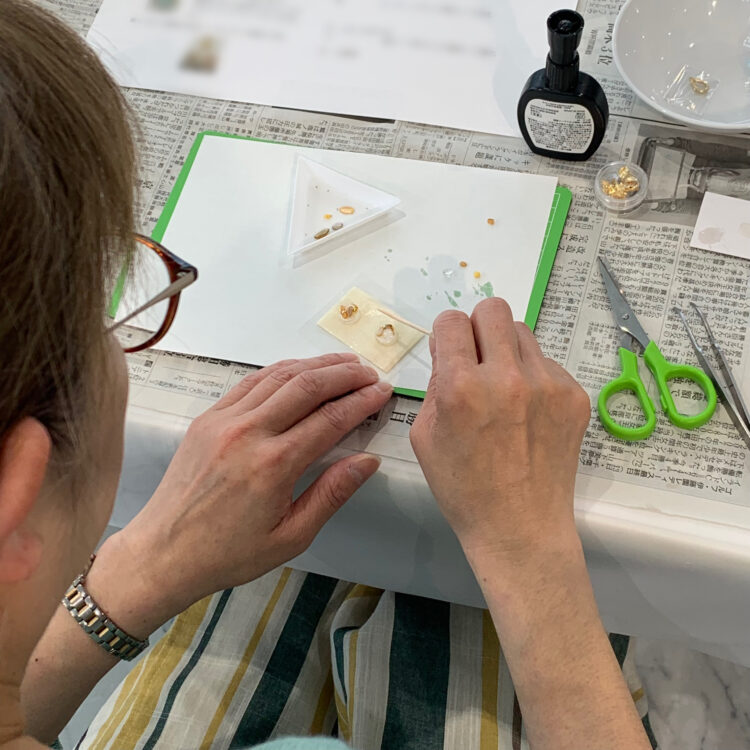 レジン液を溢れないようにそーっと垂らしながら慎重な作業がつづきます・・・・