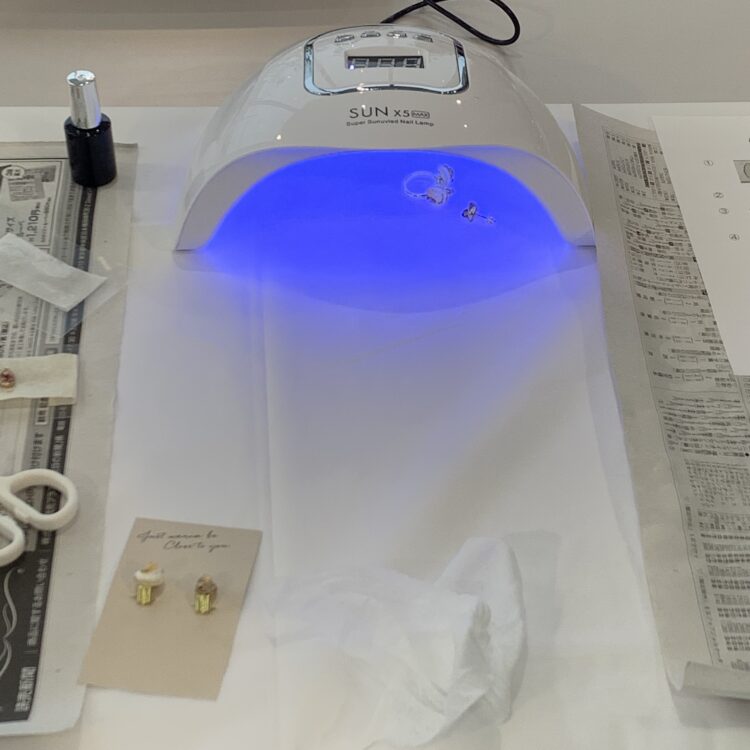 形を整えたら崩れないように気を付けながらLEDライトに当てて硬化します