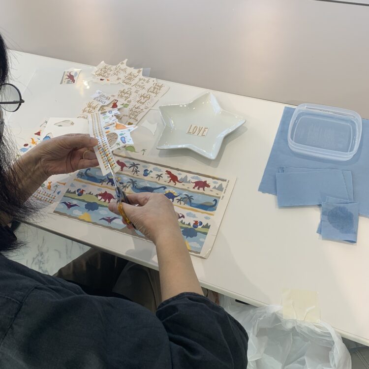 ハサミで切り取って丁寧に張り付けていきます