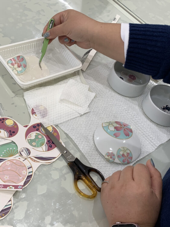 今回のレッスンでは、年末年始のおもてなしにぴったりの二段重のミニサイズの物をポーセラーツで製作しました!