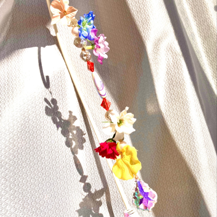 お花いっぱいのサンキャッチャーを作ります。