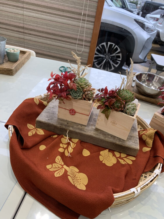 南国感も感じられる多肉植物を使って、和風のお正月アレンジで仕上げることで和洋折衷のお正月飾りを制作することができました♪