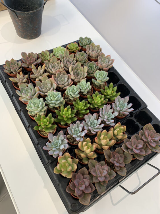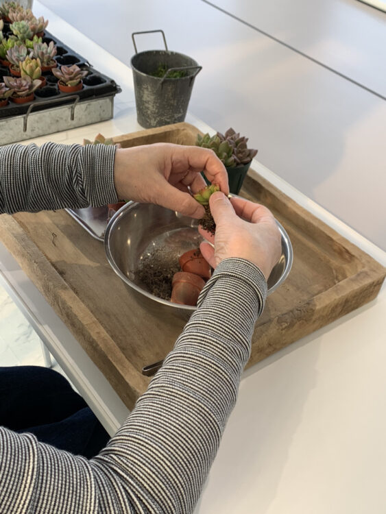 最初に多肉植物の根元をほぐしていきます。小さな鉢がまた可愛いですよね💕