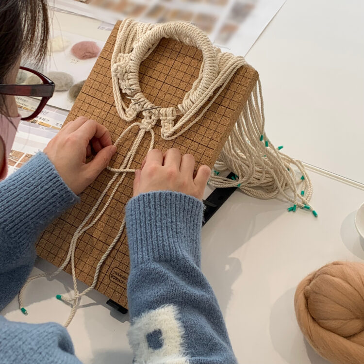 マクラメ編みは、マクラメ編み専用のコルクボードのようなものに