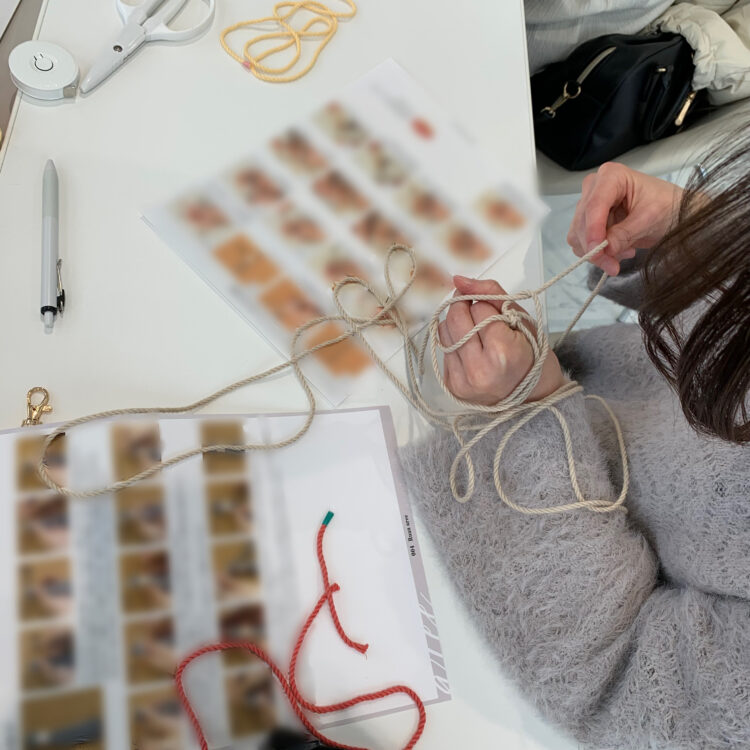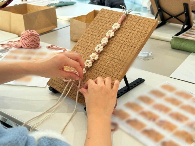 最初は、片手だけで紐を結んでいくのでとても苦戦しましたが、
